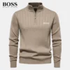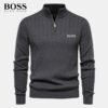 Discover this men’s zip-neck sweater, designed for those who appreciate elegance and comfort. With its slim fit and ribbed fabric, this sweater offers a modern look while ensuring optimum comfort. Its sturdy zipper and meticulous details testify to its exceptional finish.