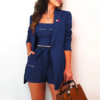 ✔ Complete look – Blazer, crop top, and shorts all in one coordinated outfit.